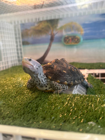 Did You Know! "Diamondback terrapins are medium-sized turtles that can be found in brackish water habitats throughout Florida. Five subspecies occur in Florida: Carolina (M. t. centrata), Florida east coast (M. t. tequesta), mangrove (M. t. rhizophorarum), ornate (M. t. macrospilota) and Mississippi (M. t. pileata). Three of these subspecies are endemic to Florida, meaning they can’t be found anywhere else in the world. Measuring at about 9.4 inches long, female diamondback terrapins are typically larger than males, which measure about 5.5 inches in length. Diamondback terrapins can usually be distinguished by the pattern on their shell, which consists of concentric rings and a “diamond-like” pattern with knobs along their backs. The shell is often multi-colored with outer rings being lighter than inner rings. In some cases, the shell is completely dark. The plastron, or underside of the shell, can be yellow or orange, though it is sometimes all black. Their skin is often grey to pale white with black spots or bars. Some individuals may lack markings, or may have a pink hue around the cheeks." (https://myfwc.com/)